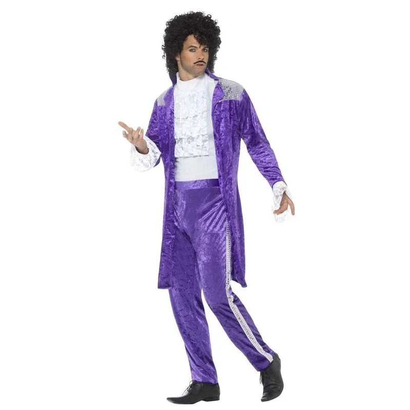 80s Purple Musician Costume, Purple, with Jacket, Mock Shirt & Trousers
