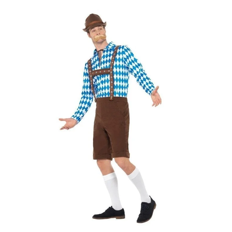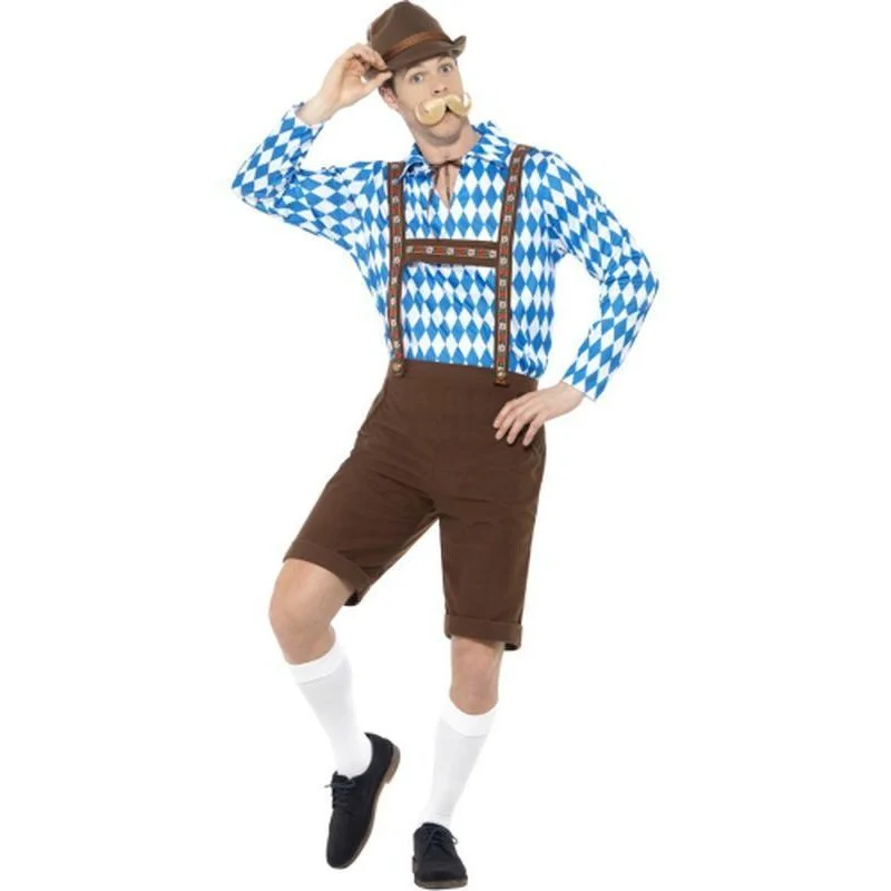 Bavarian Beer Man Costume, Blue & Brown, with Shirt & Lederhosen