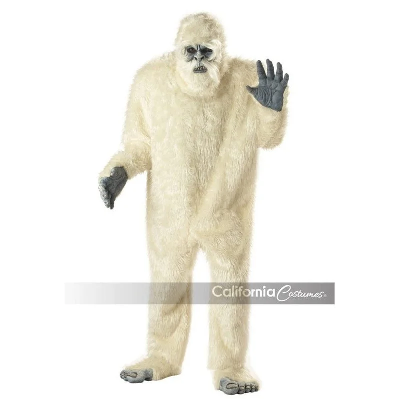 Product Description: Nothing like a snow cone break after a long day terrorizing Swiss Alp climbers. The Abominable Snowman costume includes faux fur bodysuit, inflatable shoulder piece, mask, hands, and feet.