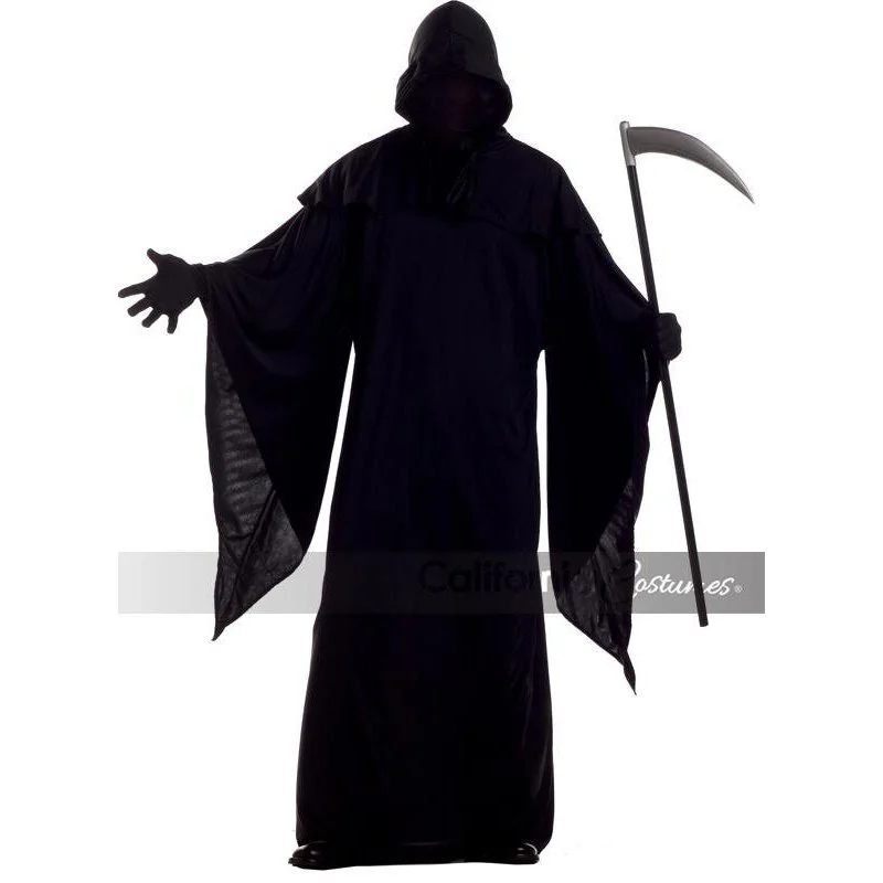 Product Description: It is time to face the faceless. The Horror robe costume comes with a hooded robe and attached see through face cover. Shoes, gloves and scythe not included.
