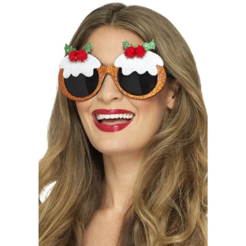 Christmas Pudding Glasses-, Brown, with Holly & Berries