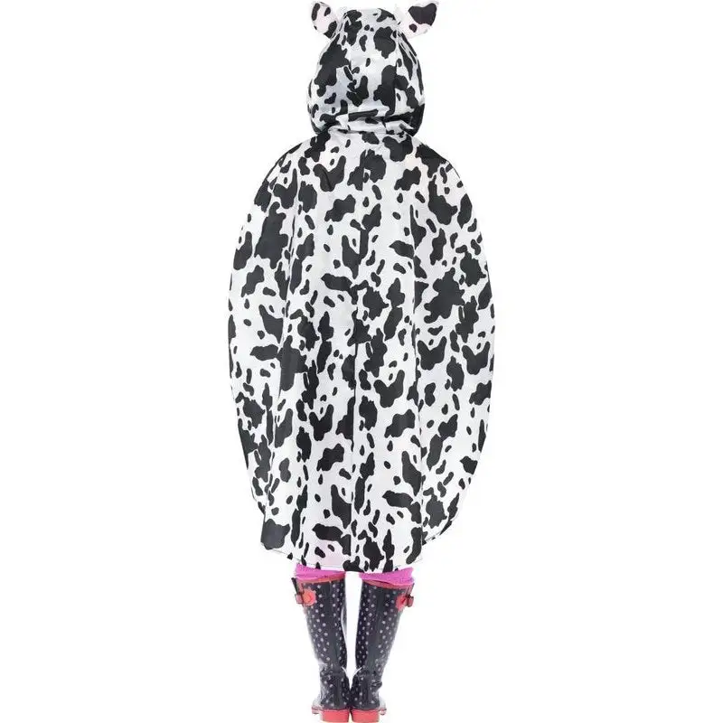 Cow Party Poncho, Black & White, with Drawstring Bag