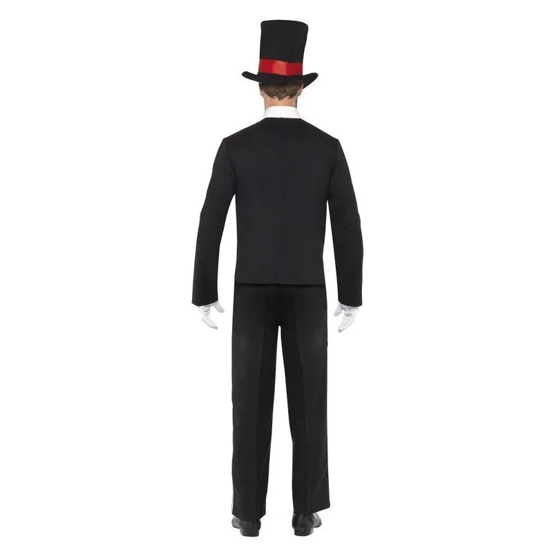Day of the Dead Costume, Black, with Jacket, Mock Shirt Front, Hat and Gloves