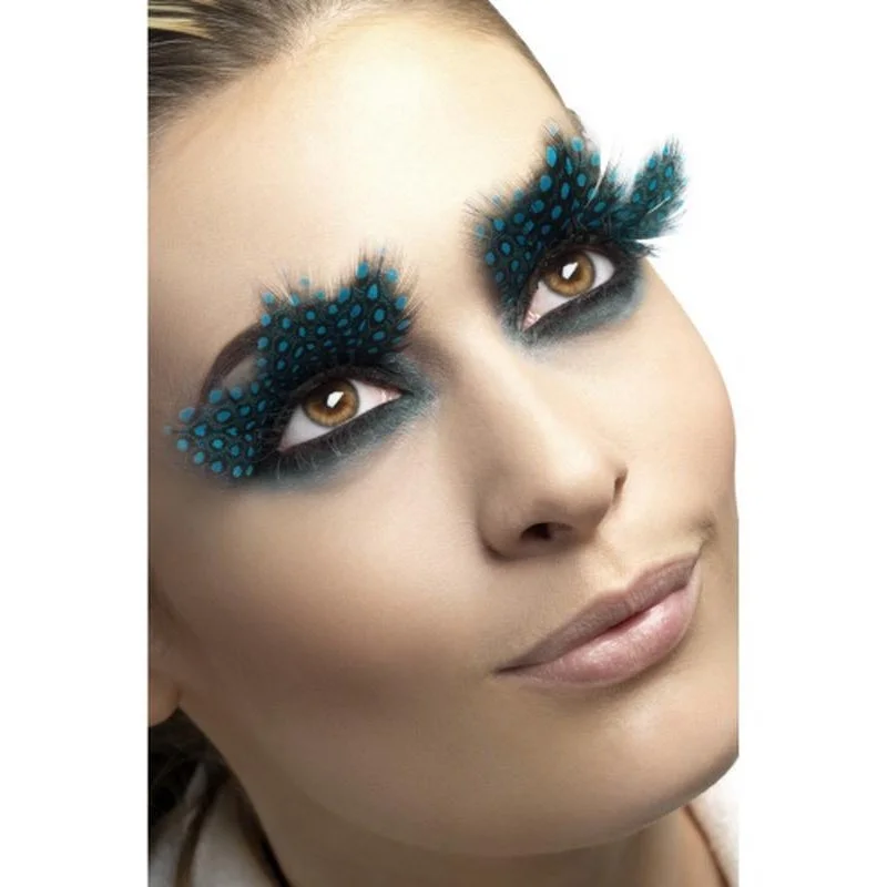 Eyelashes, Large Feather with Aqua Dots, Black, Contains Glue
