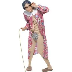 Gravity Granny Costume, Patterned, with Dressing Gown & Bodysuit
