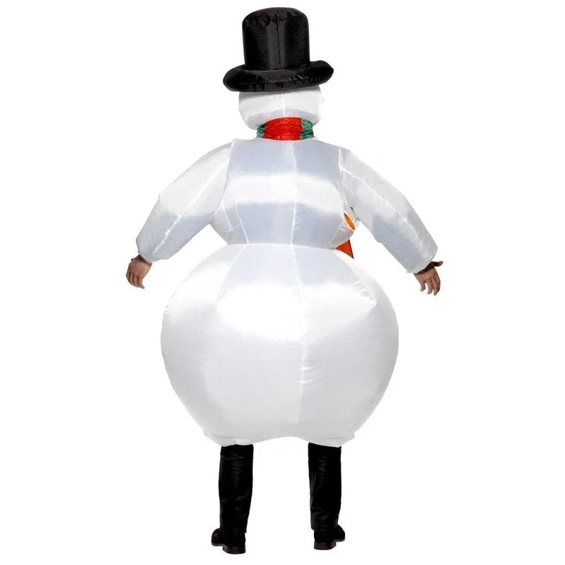 Inflatable Snowman Costume, White, with Bodysuit, Hat, Scarf & Self Inflating Fan