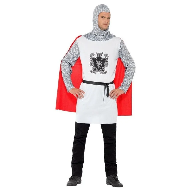 Knight Costume, Economy, White, Top with Attached Cape, Belt & Hood