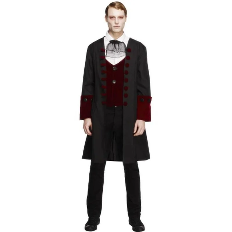 Male Fever Gothic Vamp Costume, Black, with Coat, Mock Waistcoat and Cravat