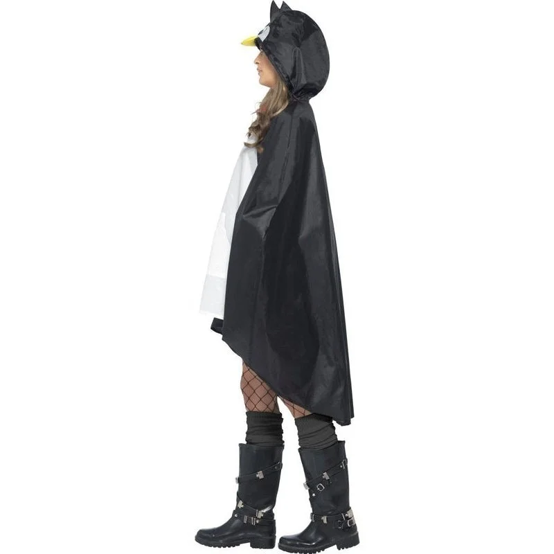 Penguin Party Poncho, Black & White, with Drawstring Bag