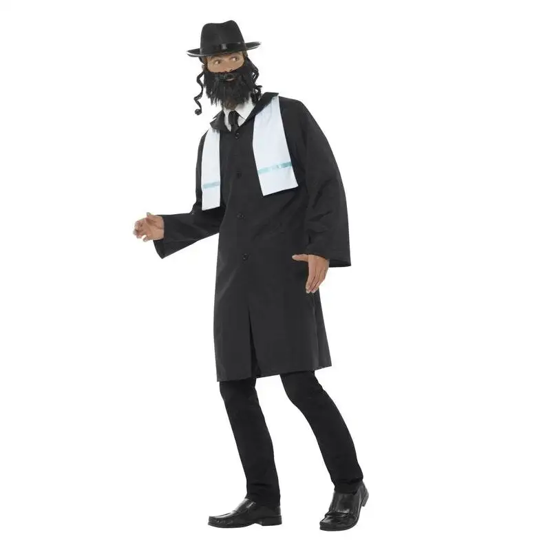 Rabbi Costume, Black, with Jacket, Scarf, Hat & Beard