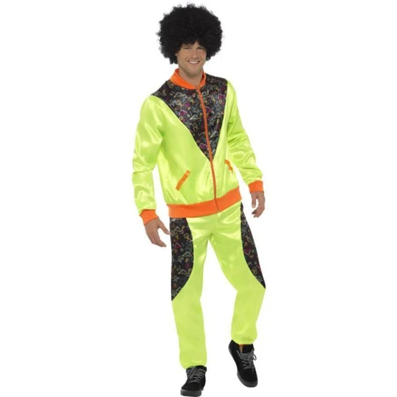 Retro Shell Suit Costume, Mens, Neon Green, with Jacket and Trousers