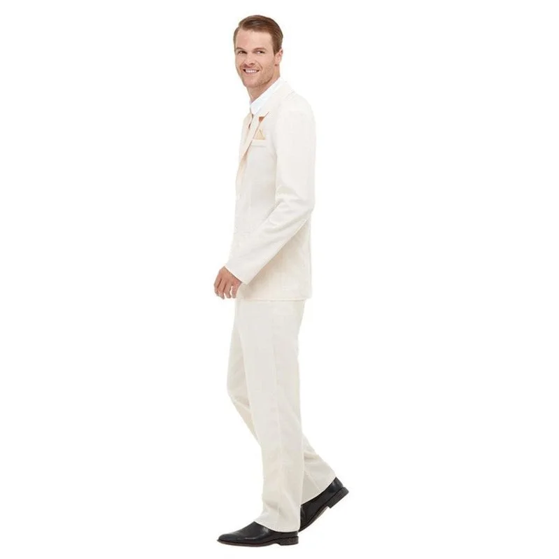 Roaring 20s Gent Costume, White, with Tuxedo Jacket, Trousers & Mock Top