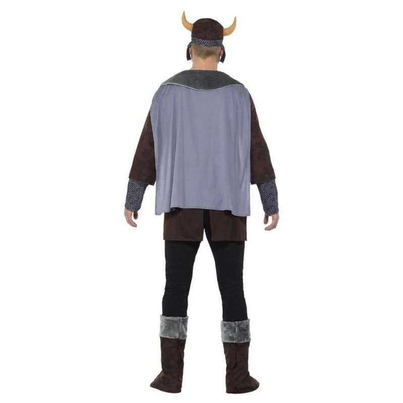 Viking Man Costume, Brown, with Top, Attached Cape, Hat & Boot Covers