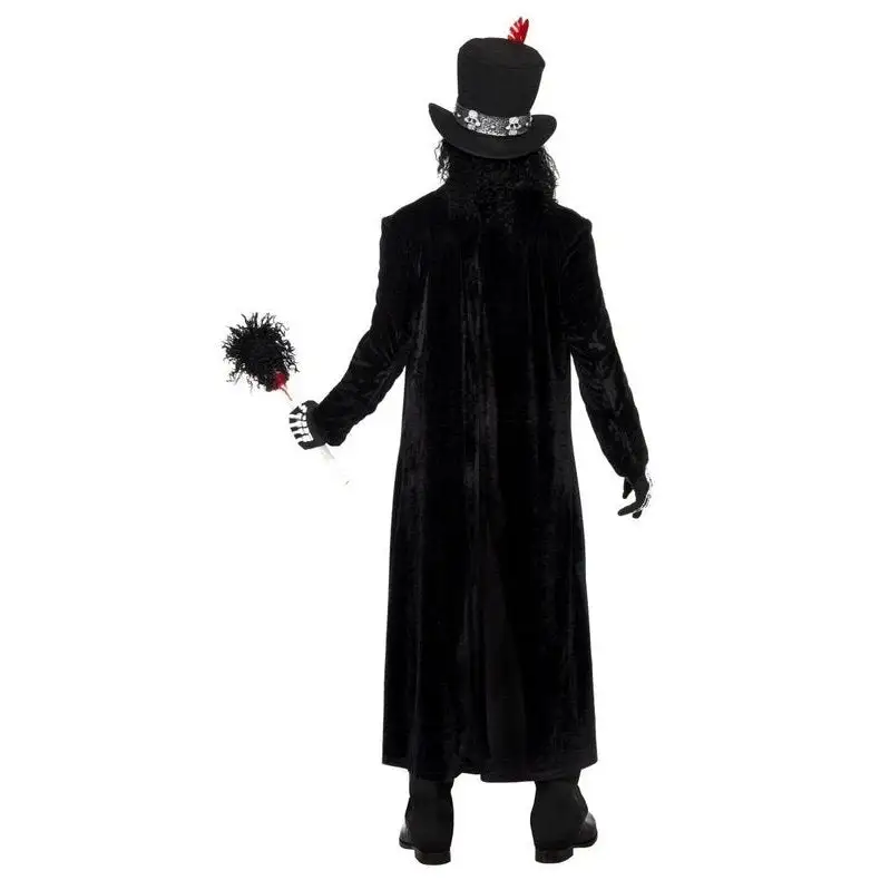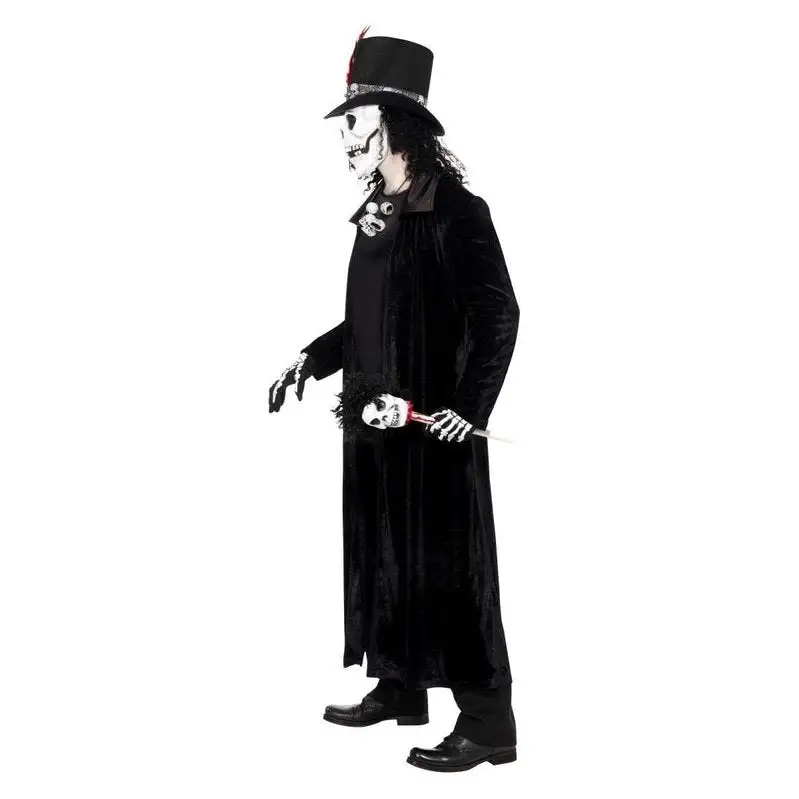 Voodoo Man Costume, Black, with Jacket, Stick, Hat, Mask, Hair & Necklace