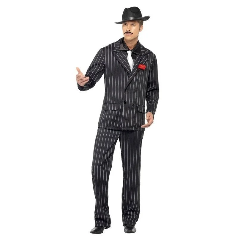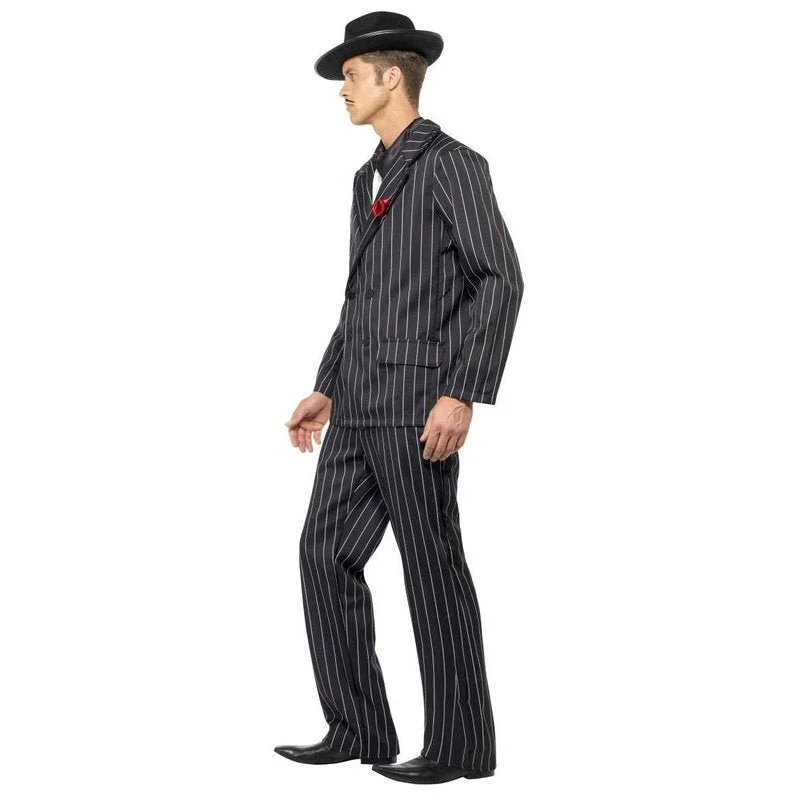 Zoot Suit Costume, Male, Black, Jacket Rose in Lapel, Trousers, Shirt Front & Tie.